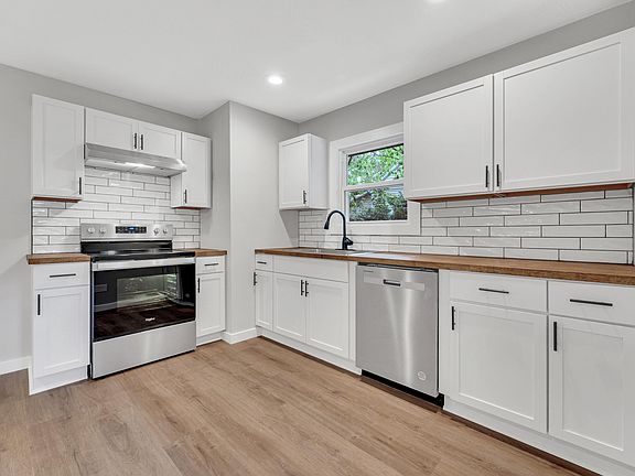 This two bedroom home has just finished being fully remodeled! It's got a brand new roof! Brand new A/C unit. Beautiful white kitchen cabinets with butcher block countertops, and a subway tile backsplash. Brand new electric range with glass flat top and brand new stainless steel dishwasher included. All new doors installed and new double pane windows throughout. New ridged core max 22 flooring installed throughout home. It's a waterproof stone composite flooring that's scratch and stain resistant. Fresh coat of paint just applied inside and out! The bathroom has a brand new, full size shower/tub with porcelain tile walls, new lighting, and vanity. Outside there's a large covered front deck to sit and enjoy the mature trees surrounding the property and a fenced in yard for added privacy. Westport schools k-8 and central high school. Just a short drive to Nathaniel-green park and botanical gardens.