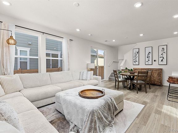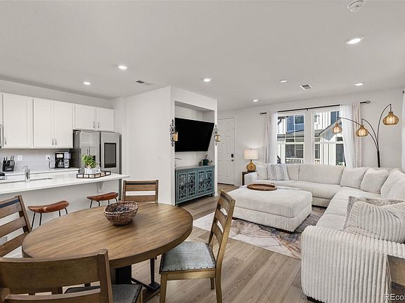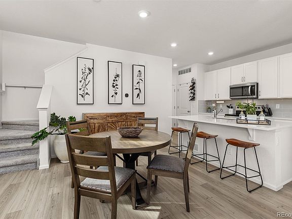 Welcome home to this charming townhome nestled in the serene community of Sky Ranch! This beautifully designed home features 3 bedrooms and 3 bathrooms. As you step inside, you'll be greeted by high ceilings and a spacious open floor plan, accentuated by recessed lighting and a blend of carpet and luxury laminate flooring. The heart of the home is the open kitchen, equipped with stainless steel appliances and an island perfect for casual dining or entertaining. The primary ensuite bathroom offers a private retreat, while the additional bedrooms provide ample space for family or guests. A loft adds a unique touch, offering versatility for various uses. The primary bedrooms walk-in closet ensures plenty of storage space for your wardrobe needs. Outdoor living is a breeze with a welcoming porch and a fenced side yard, ideal for relaxation or gatherings. This home is equipped with modern conveniences, including, a eco bee thermostat, water efficient fixtures, central air conditioning, and central heating to ensure year-round comfort. The attached 2 car garage offers secure parking, and the crawl space provides additional storage options. A washer and dryer complete the package, making this home move-in ready! Don't miss the opportunity to make this delightful property your own!
