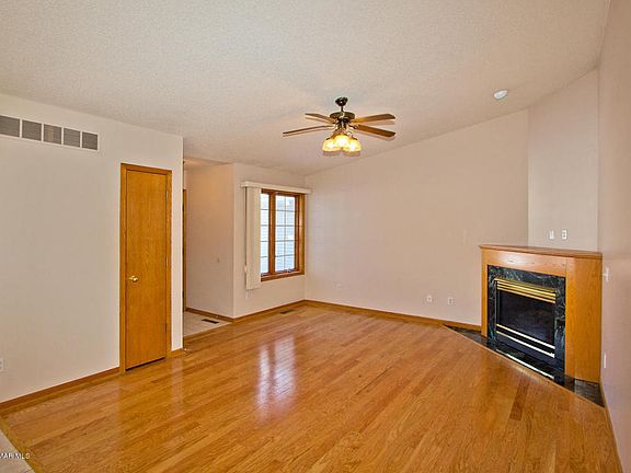 Main floor living in this 2 bedroom 2 bath townhome. Updated kitchen, new flooring, fresh paint and high efficient furnace. Sunny open floor plan walks out to deck with retractable awning. Both spacious bedrooms have walk-in closets. The living room has a gas fireplace and is open to kitchen and dining. Large 2 car garage with storage. Brick fronted and vinyl sided. End of cul-de-sac., Directions: 18th Ave NW to 28th St NW to 19th Ave NW