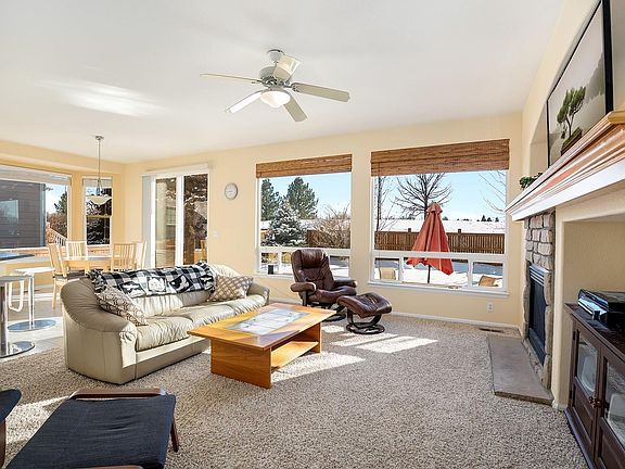 Open, bright, and spacious, this home is sure to delight with its 6 bedrooms, 4 baths, fully fenced back yard, large patio, sprinkler system, lush landscaping, newer roof, fully owned solar panels with the perfect 40 degree pitch for ultimate efficiency. Wonderful views of the Flatirons and open space. The Interior features a large open kitchen with granite counter-tops, island, gas range, stainless steel appliances, new carpet, open floor plan, central vacuum system, smart home features, ceiling fans and more! Fully finished basement with 8 ft ceilings, plenty of storage, 3/4 bathroom and rough-in for future wet-bar. If this isn't enough..wait until you hear about the amenities this community has to offer!! Tennis and volleyball courts, bike paths and walking trails, Soccer field and Baseball diamond, community pool AND The Great Bark Dog Park nearby!!!
