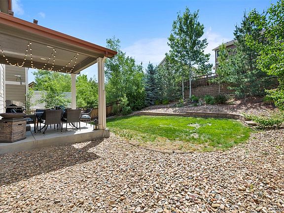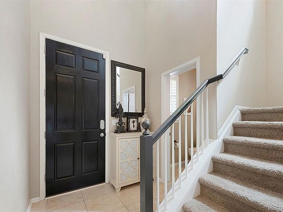 Come fall in love with this stunning 2 story nestled in the heart of the highly desired Meadows Community with a one of a kind treed and delightful backyard oasis! This home is truly made for both entertaining and everyday living, with plenty of space inside and close to all the amenities you'll ever need. This well-lit open floor plan greets you right away with 2 story grand foyer, 18" tastefully tiled floors throughout the main level, high end present day lighting everywhere, and filled with picture perfect plantation shutters. The heart of this home, the kitchen- features granite counters, custom painted cabinets with crown molding, stainless appliances, a gas range, a roomy pantry, eat-in island, and your own sunny breakfast nook that effortlessly flows into the large cozy great room and out to the professionally landscaped backyard paradise. Walking up the staircase you will discover a thoughtfully designed upper level with 3 sizeable bedrooms, full bath, and your own master retreat with its own ensuite bathroom that includes a massive walk-in closet, floor to ceiling tiled walk in shower, upgraded lighting, dual sinks, modern fixtures, custom painted cabinets, and tastefully tiled counters. Perfectly situated just a few blocks away from the 2 community pools, numerous parks, miles of hiking/biking trails, some of the nations best school districts and a just 2 minute drive to numerous dining, tons of entertainment, and I-25 this home is an absolute-must see!