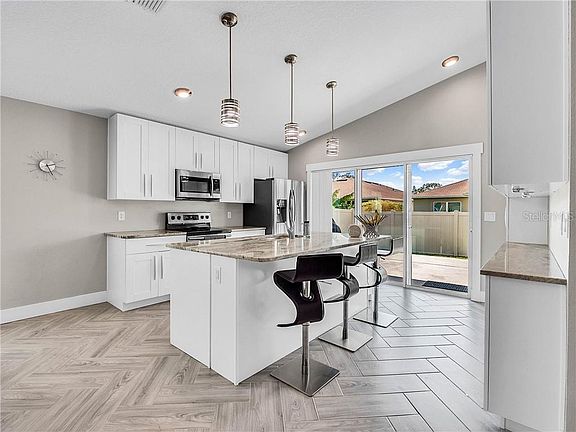 4 bedrooms 2 bathrooms totally remodeled beautiful home with so many upgrades the pickiest buyer will be very impressed. Step into a gorgeous open floor plan with grey wood look tile throughout the main living room, and kitchen that offers hardwood shaker soft close cabinets, beautiful granite slab on top of your counters, and island a great place to entertain your guests. All rooms have been updated with laminate flooring. Starting with the Masterbedroom which is very spacious has a walk-in closet, and leads into the most beautiful Master bathroom with updated Tile and bands throughout with granite countertops, and a seamless shower door. The other bedrooms are spacious and would make excellent rooms for your guests or family, or office space. Your evening's in the backyard will be very pleasant with a very nice lanai for day time shade, and a perfect gathering area for parties. Everything in this home has been redone in 2017 from the roof, trusses, double pane vinyl windows, Trane AC unit, Spray Foam ceiling insulation, insulated Garage door, Paint, led lighting. Nothing has been missed in this home it is meticulously well kept located near 408, 417, the 528, and OIA.