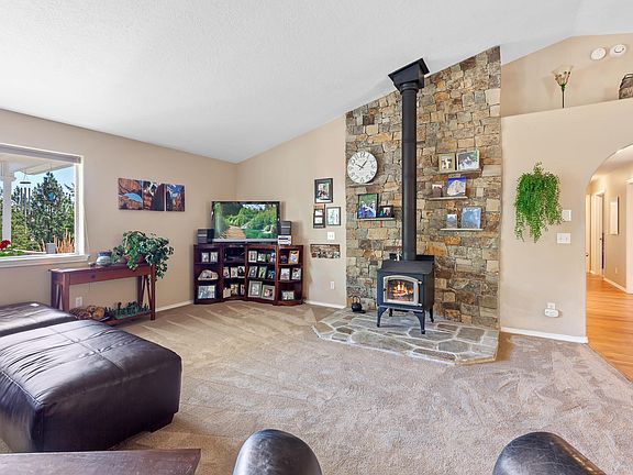 Beautiful single level, 3 bed / 2 bath with exceptional mountain views and privacy close to town on over an acre! This open 2279 sq ft home is easy living with 36'' wide doors and 48'' wide halls. Open floor plan with vaulted ceilings, new marble counters and flooring, garden window, central vac, A/C, security system, jetted tub and step-in tiled shower in master, walk-in closet, huge walk-in pantry, covered deck for entertaining or just relaxing, covered porch. Possible room for a small shop, no HOA's or CC&Rs!