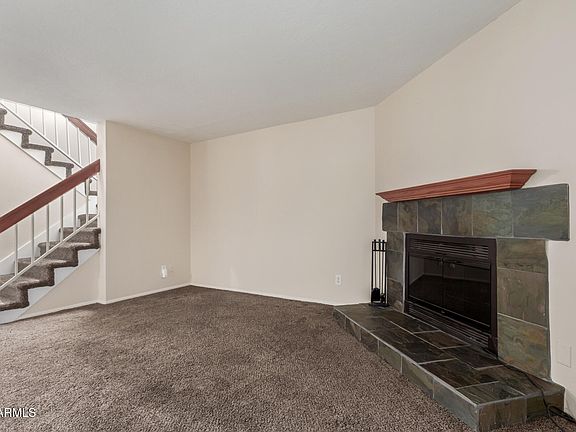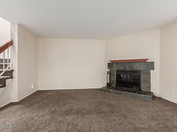 Generous square footage, rare opportunity for this 2 story, 3 bdrm, 2 1/2 bath, (2 full baths upstairs) townhouse with a wood burning fireplace, vaulted ceilings, ceiling fans, sun screens on all windows, W/D and refrigerator included, also full size 2 car garage and cozy yard. Kitchen, great room and powder room down stairs. Cool off in the community pool and relax in the jacuzzi in cooler months, parking lot just repaved last summer. Conveniently close to 60 & 101. This beauty won't last long. HOA covers Water, Trash, Sewer, your only necessity is Electric...soooo Convenient