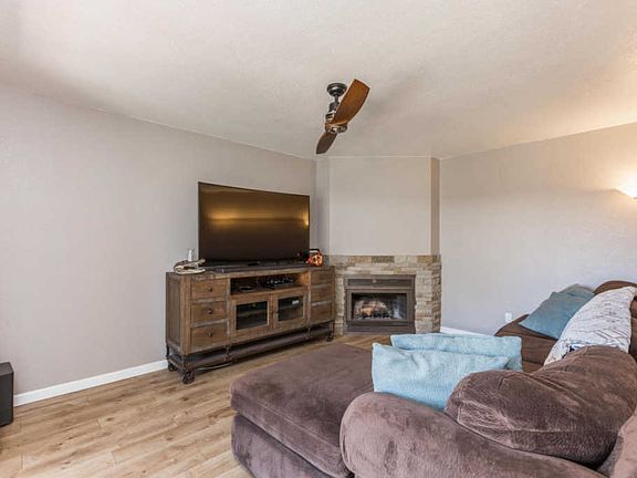 Nicely updated townhome with 2 bedrooms & 2.5 baths in 1095 SqFt. The living room has a wood-burning fireplace with stacked stone surround & wood-look laminate flooring floors throughout the living, dining & kitchen. Sliding doors lead out to the covered patio, the perfect spot for your BBQ. The kitchen is nicely finished with white cabinetry, stainless appliances, modern subway-style & stainless backsplashes & concrete countertops. Bedrooms are upstairs. The master bedroom has double door entry, private balcony, vaulted ceilings & attached bath. Another full bath is upstairs and a powder room is downstairs. Other features include a 2 car garage, newer A/C (2016) tankless water heater, indoor laundry, under-stair storage & community pool. See this home today!