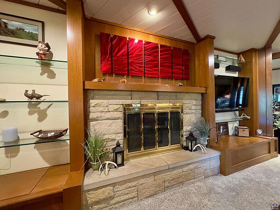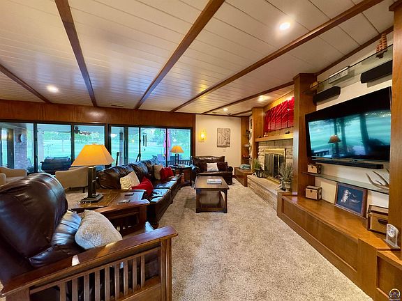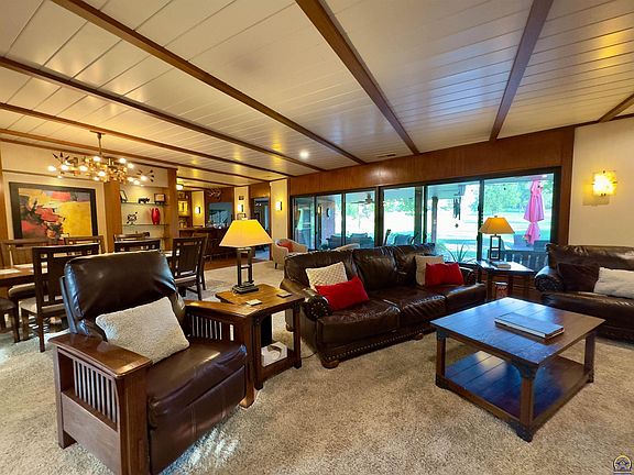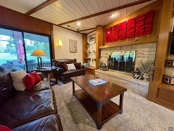 One of a kind spacious mid-century style ranch, ideal for entertaining, with great views of Topeka Country Club Golf Course. Seller has done so much new in the last five years. There are new thermal pane Anderson windows throughout ($90,000) with custom window coverings. Seller replaced the asphalt driveway, replaced the sewer line, new interior paint, newly remodeled laundry room, game room, office, guest wing and bath, freshened up the landscaping and some flooring. The kitchen is a chef's dream with new custom cabinetry and appliances. If you love to entertain, there are multiple spaces inside and outside available. There is a private Spanish garden block patio with hot tub. Huge brick covered patio with gas fire pit & waterscape that backs up to the golf course. Bar built to mimic the Biltmore Hotel style. Master Bedroom was previously remodeled to add a large 8 x 15 walk in closet. When you move here you are not only buying a new home... you are gaining a new lifestyle. A must see!