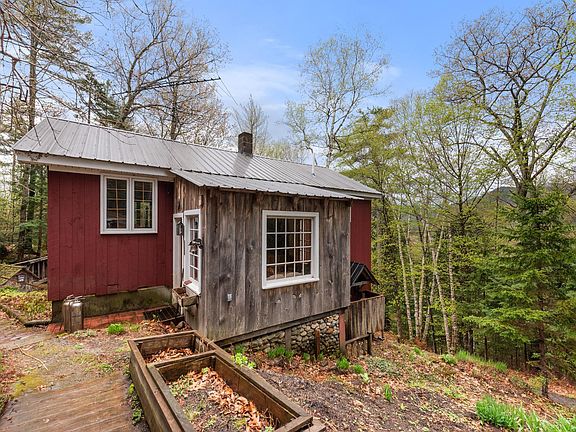 Experience Mountain Serenity in a Handcrafted Woodland Retreat. If you’ve ever dreamed of living in the peaceful embrace of the woods, surrounded by mountains, this charming 2-bedroom, 2-bath home is a must-see. Thoughtfully crafted with repurposed wood-peg hardwood floors, hand-hewn beams, and vintage interior doors, this home is brimming with character and timeless appeal. At its heart stands a striking granite curb stone chimney, making a bold and welcoming statement as you enter. A spacious sunroom offers the perfect place to relax and take in the scenic views year-round. Step outside and immerse yourself in lush, established perennial gardens that bloom across the landscape. A generous garden shed provides ample storage for all your tools and outdoor needs, while a large barn atop the property offers even more space for storage or creative use. This home is the perfect blend of rustic elegance and functional living, your ideal mountain escape awaits!