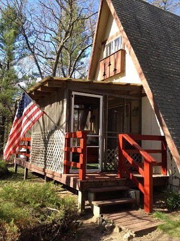 REMODELED PERFECT GETAWAY!! Clean & charming A-frame offers a great escape from the daily grind. Located near Lake McGinnis & hundreds of acres of public land & a multitude of fishing lakes. Soak in nature around the firepit in the backyard or enjoy the screened porch in the front yard while watching the birds. Oak floors, beamed ceiling, propane fireplace, antenae with free digital stations, new kitchen and applliances included. Property has insulated and vapor barrier crawl space. Broker owned. (Internet 5983791)