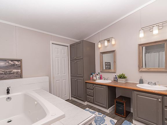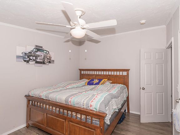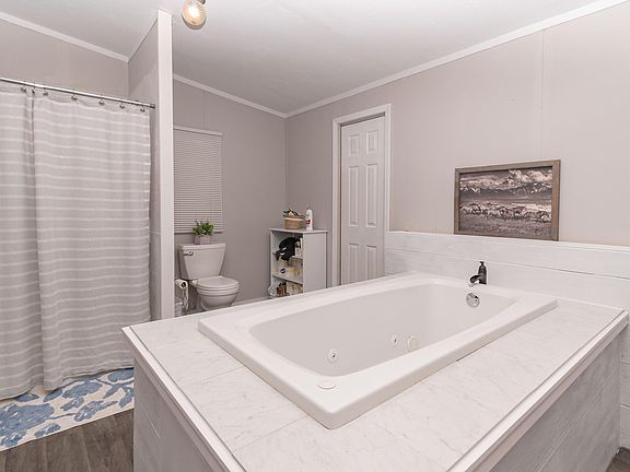 Winding driveway to beautiful mobile home, nicely off the beaten path, two car detached garage and steel framed barn at one time had a kennel inside.Has a beautiful view of neighbor's pond off of back deck.