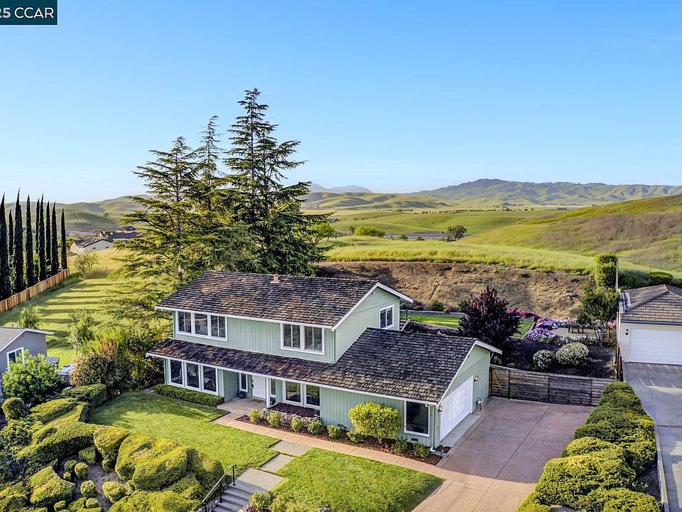 This one-of-a-kind custom home offers breathtaking, unobstructed views of the Livermore Valley, located on a quiet cul-de-sac. Set on a premium lot with no rear neighbors, this property offers rare privacy & a serene backyard retreat. Enjoy 360° panoramic views from the top of the terraced yard—perfect for relaxing mornings or stunning sunsets. Step inside to a spacious living room & elegant formal dining room. The updated kitchen features granite counters, double ovens, walk-in pantry—ideal for entertaining. Adjacent family room includes a cozy fireplace & direct access to the private backyard. Downstairs bedroom/office is perfect for guests or remote work. The upstairs primary suite offers stunning views, a remodeled en-suite bathroom, & a large walk-in closet. Two additional bedrooms share an updated hall bathroom. Additional highlights include downstairs laundry room, fresh interior paint, Andersen windows, luxury plank flooring & recessed lighting throughout. This is a truly unique opportunity to own a custom view home w thoughtful upgrades and unbeatable privacy!
