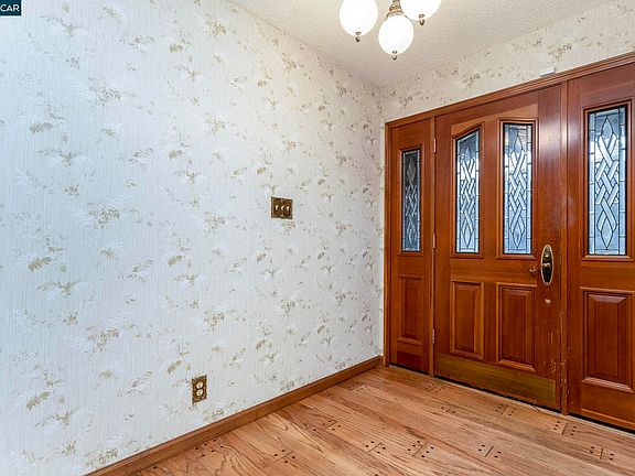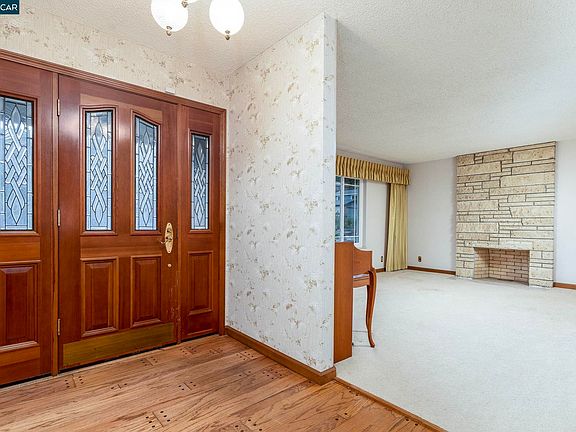 2834 Wright Avenue is located in quiet picturesque Pinole Valley. The long rose lined driveway and beautifully manicured front lawn, gives the home an inviting feel. This 1/4 acre well maintained mid-century home is in impeccable condition. The dining room is adjacent to the living room & kitchen,creating a nice flow when entertaining guests. Moving through the kitchen you will find the large family room with an additional brick fireplace and built-ins, as well as sliding door access to the backyard. A unique feature about this home is the large pool & pool house in the backyard. Original wide plank hardwood floors can be found throughout the living space with carpet found in the living room and bedrooms. The primary bedroom with a double door entrance, is generous in size, offers access to the backyard, and includes an ensuite with multiple closets. The additional bedrooms are ample in size with plenty of closet space, each is located close to the guest bath with double sinks, tub & shower. Minutes to Trader Joes, Peet's, Pinole Valley High, parks and Wildcat Canyon hiking trails. You do not want to miss out on this East Bay gem!