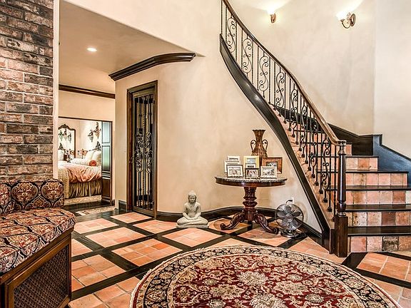 - Recessed Lighting, Built-Ins, Stone Counters, High Ceilings (9 Feet+), Beamed Ceilings, Bar, Sunken Living Room, Balcony, Crown Moldings, Block Walls