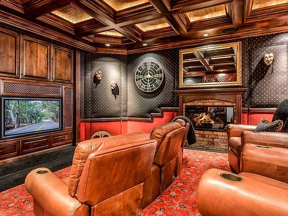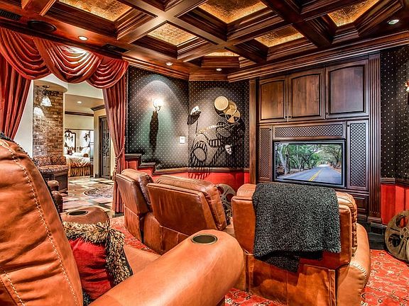 This sophisticated completely remodeled entertainer's luxury home on a quiet cul de sac is a must see! Beamed, cathedral ceilings, wrought iron chandeliers and sconces & crown molding offers detailed finishes throughout. Hardwood, stone and tile flooring throughout are welcoming details. Custom windows, doors and draperies in all rooms. Pocket doors throughout add privacy for when you are entertaining overnight guests. A game room with billiards & built in wet bar with pour wall opens to a home theater with stadium seating, entertainment system including a projection unit. Pocket doors keep all equipment hidden. A fireplace and copper ceilings finish it off. The library offers built in bookcases along with 2 desk stations and a fireplace. A chefs kitchen features a Viking built in double oven, a sub zero refrigerator, 4 professional dishwashers, a custom espresso/cappuccino bar and a wood burning pizza oven. Countertops are onyx and the island is a dark butcher block. The generous sized master suite offers a massive stone fireplace for those cool evenings and an intricate ceiling fan for those toasty summer nights. The master bath features a walk in stone shower/sauna, an oversized soaking Jacuzzi/jetted spa bath with 2 separate towel warming racks for your ultimate comfort. A vanity and storage area are a dream! The 3 car garage offers ample parking and storage and the home is wired for a security system with motion sensors.