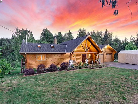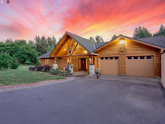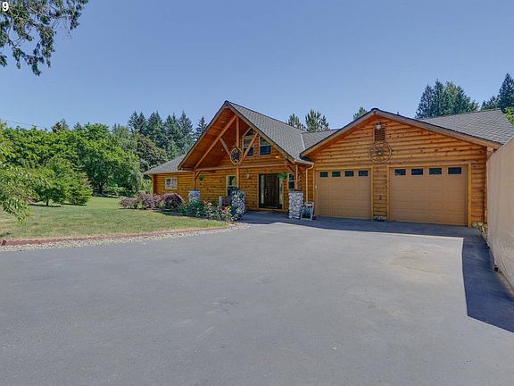 Custom built log cabin with Master on the main. Great Location & an amazing property. 2 master bedrooms, spacious kitchen with gas applicants features nook, formal dining and eating bar, sauna, spacious garden vaulted ceilings, river rock fireplace, wired for sound/surveillance security, additional 22'x23' storage/shop/recreational garage on lower level with access to home and potential 2nd kitchen and ADU possibility.