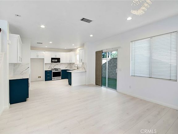 Welcome to an exceptional opportunity in Santa Clarita! This beautiful residence, boasting 3 bedrooms and 2.5 bathrooms, offers ample space for comfortable living. As you step inside, recessed lighting throughout creates a warm and inviting ambiance, complementing the airy kitchen a chef's dream with its blue and white shaker cabinets, quartz countertops, and backsplash. Equipped with stainless steel appliances, including a farm sink and gas range, the kitchen seamlessly blends style with functionality. But there's more to love about this home. The main floor features a modern half bath with a floating vanity, enhanced by sleek OLED mirrors. Nest central air and heat ensure year-round comfort, while the newly painted interior adds a fresh touch to the home's aesthetic. Upstairs, the primary bedroom retreat awaits, complete with a ceiling fan, walk-in closet, and a beautifully tiled en-suite bathroom featuring a dual sink modern vanity and multi-jet shower system. Convenience is elevated with upstairs laundry, making chores a breeze. Additionally, a home office nook provides the perfect space for productivity or relaxation. Throughout the upstairs, elegant cherry wood flooring graces the hallways and bedrooms, adding warmth and character to every space. Artificial turf in both the front and back yard to enjoy a lush, green landscape year-round with minimal maintenance. Embrace the essence of modern living and make this exquisite residence your new home sweet home.