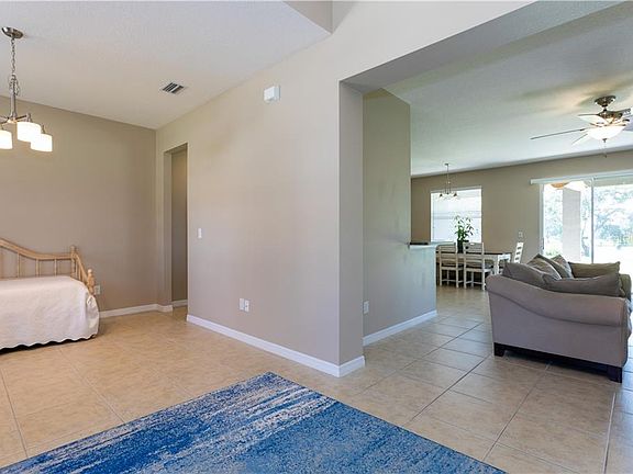 You will fall in love with this immaculate home in Sugar Mill Lakes! Built in 2012, this spacious approximately 2,020 square-foot home is perfect for a growing family or anyone looking for extra room. Upon entering, you are met with a formal dining room and separate den area that has limitless possibilities. This three-bedroom two-bath home is a true split floor plan. The master bedroom includes an ensuite bath and spacious dual closets. Opening onto the side of the lanai, the owners' suite provides ultimate privacy and seclusion. The kitchen is equipped with stainless steel appliances and a large storage pantry. In addition, the kitchen, living room and eat-in dining area, flow nicely in an open floor concept- providing a comfortable place for gathering and daily activities. The remaining two bedrooms are set apart from the main living space with access to a sizable spare bathroom. A large laundry area with ample storage provides access to the two-car garage. This home is situated on an oversized lot peacefully overlooking a large pond. With over a quarter of an acre, the backyard has plenty of room to add a pool or create your own outdoor oasis. Sugar Mill Lakes has low HOA fees and no CDD- neighborhood amenities include multiple playgrounds, basketball courts and more. Excellent location with easy access to I-75 and the Ellenton Outlet Mall. This home is a must-see!