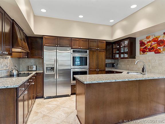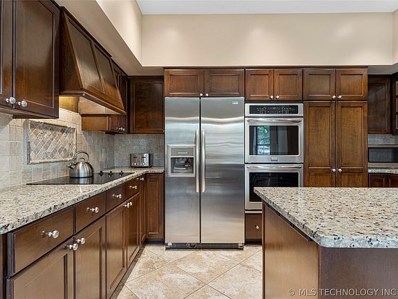 This well-maintained home is perfect for families, entertaining, inside and outside living, and peaceful evenings on the back patio! Located in the highly sought-after Jenks School District, this charming home offers an unbeatable location with convenient access to popular restaurants, shopping centers, and Riverside Parkway for easy travel to downtown. The property features a stunning park-like backyard with a large patio, surrounded by mature trees that provide shade and serenity. Inside, you'll find a fantastic main floor layout that flows easily for entertaining and guests, complete with a family room, updated kitchen with lots of storage, spacious dining room and living room, large one bedroom/office space perfect for remote working and/or hosting guests, half bath and laundry/utility room equipped with a sink, closet and built in storage, for added convenience. Up the wide staircase to the second floor, you'll discover a large primary suite with an oversized bath and large walk-in closet, two more generously sized bedrooms, each with walk-in closets and another full size bathroom. The oversized garage includes a workbench, an extra-large storage closet, and insulated double garage door. All carpet was replaced in June 2024 and paint throughout has been recently updated. Located in a well-maintained HOA neighborhood with professional landscaping, this home combines modern comfort with natural beauty, making it a perfect retreat for both relaxation and everyday living.