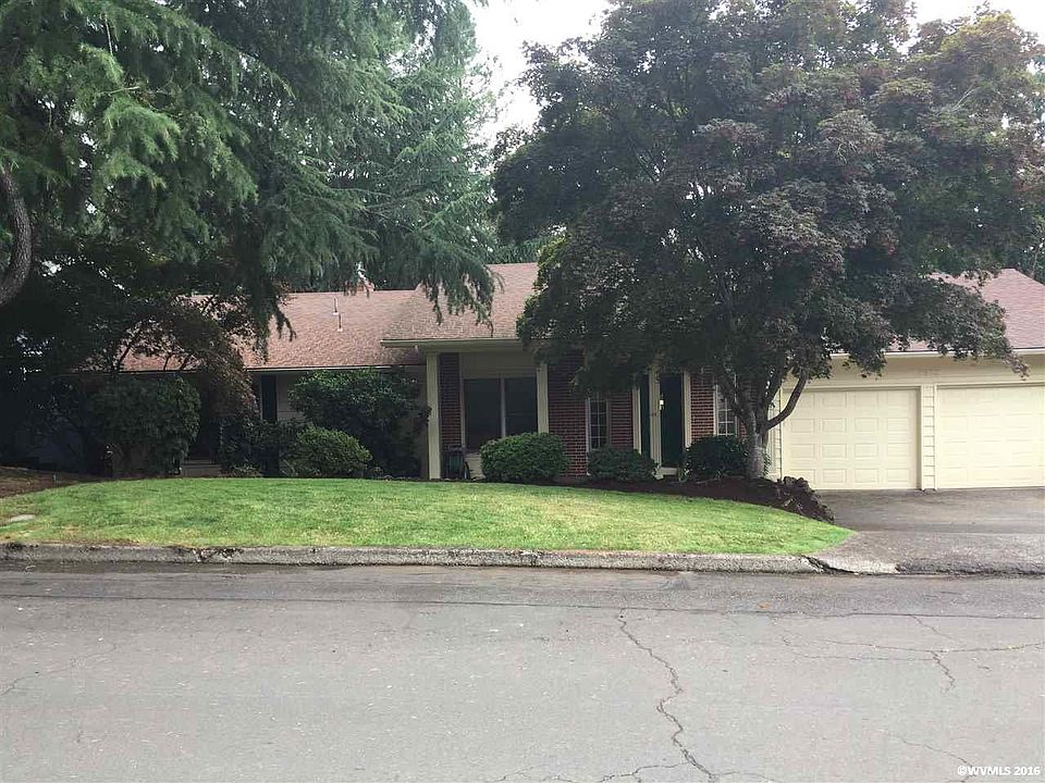 Candalaria Special! Covered front porch with pillars and brick siding in private, quiet treed setting. 3412 SF with 4 Bedrooms - 3 full baths - built in 1967. Wide, tiled entry opening to floor to ceiling windows in dining room. Remodeled kitchen with granite countertops. Huge sunken living room with marble surround gas fireplace, and windows lining the west side opening to the view. Master with walk in closet plus 2 additional bedrooms on the main level. Lower level features huge rec room with wood burning fireplace, fitness room that opens to a covered patio, laundry & project room, huge storage room, full bath, and sunken bedroom with 2 closets. Full length deck on main level with a view of the coastal range and West Salem for outdoor entertaining. Built-ins and ample storage throughout. Renewal by Anderson windows (lifetime warranty). Fully fenced backyard with shed. EV charger. Located near Candalaria Elementary School.