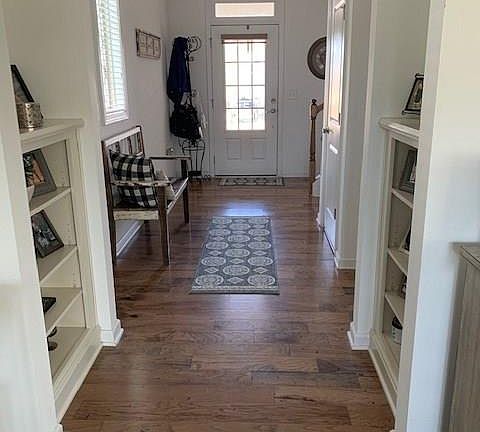 This home is a fan favorite with 1st floor master bedroom dual vanity, garden tub, tiled shower and walk in closets. 9' ceilings on both floors, 5" wood on 1st floor inc. steps, iron railings. Entertain in FR with gas fireplace, 2nd floor bedrooms are connected by a "Jack & Jill" bath and a bonus room makes a perfect office or home theater. There are three swimming pools in the community. The house has fence in the back and extend concrete between garage and porch makes it a perfect cook out patio.
