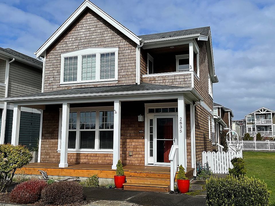 Coastal craftsman beauty. Light, bright and open floor plan in heart of Mill Pond Village-it awaits easy living and active lifestyles. Pond, Columbia River & bridge views! Offers 3 bedrooms, two baths. Master on the main, five piece bath. Lovely open kitchen, living and dining areas. Back and front porches plus deck on 2nd level. Second floor with 2 bedrooms and bath also features a loft room for library, office or TV room. Fire suppression system. Two car attached garage, garden spaces & fenced.