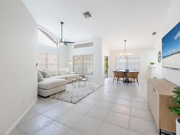 AVAILABLE BEGINNING APRIL 2026 FLEXIBLE FURNISHED RENTAL. 3 bedroom, 2 bath single family home with 2 separate lanais and attached 2 car garage. Tile floors, white kitchen cabinets, NEW stainless steel appliances, NEW lighting & fans, FRESH paint. Includes cable & Wifi, bicycles and beach chairs for your convenience. Lakeside is a gated community with a 40-acre lake and offers many amenities, including two swimming pools, spa, and a two-story Old Florida clubhouse, complete with sauna, weight room, shower, kitchen facilities, library and game rooms. Lakeside also features five clay tennis courts, pickleball court, playground, shuffleboard, bocce and basketball courts. A 1.5 mile walking path meanders through an award-winning lush landscape including two lighted lake fountains. Lakeside is located close to everything - 5 minutes to Mercato, 10 minutes to Vanderbilt Beach & only 20 minutes to downtown Naples.