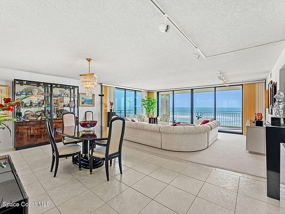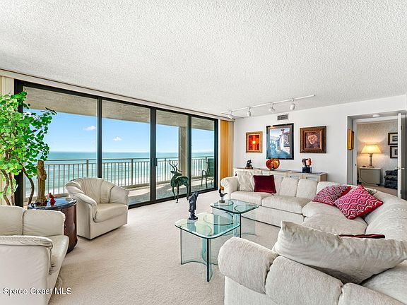 Embrace the ultimate in oceanfront luxury with this captivating 3-bed, 2-bath, 2,077 sq ft condo, ideally positioned on the NE corner for unobstructed views of breathtaking rocket launches & daily sunrises over the Atlantic. Wraparound balconies on both the East & West sides offer the perfect vantage points for soaking up panoramic views, w/ the fresh ocean air enveloping you from every angle. Inside, enjoy modern comforts w/ a 2024 AC, filtered water at the kitchen sink, & a separate freezer in the laundry room, all complemented by a washer & dryer that convey. Recent upgrades include newly replaced energy-efficient windows, shutters, & balcony, plus a two-year-old elevator for seamless convenience. This residence also includes an oversized parking space w/ ample storage, providing practicality alongside luxury. W/ access to a community pool & clubhouse, this condo captures the essence of upscale coastal living, making it your private retreat for relaxation & awe-inspiring moments.
