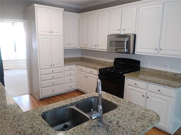 - Kitchen Features: Breakfast Bar, Pantry, View to Family Room, Stone Counters, Breakfast Room, Cabinets White