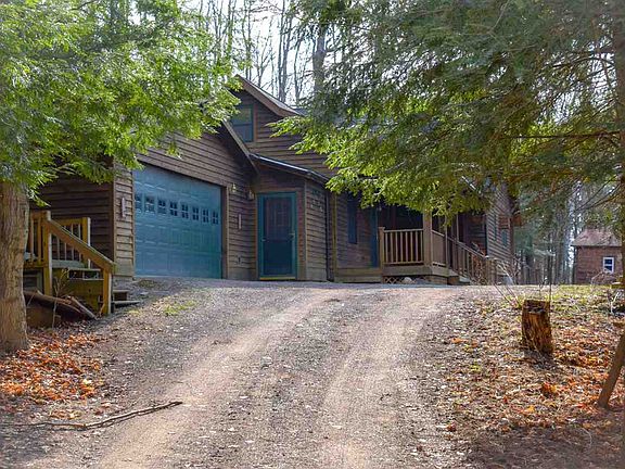 Custom built, cedar home huddled in the woods, on 5 rolling acres. A gentle creek runs through the property, making it's way to Barnard Pond. Follow the winding trail the pond house at the water's edge, your own peaceful paradise among the trees. This beautiful 3 bedroom, 2.5 bath home has 2 covered porches, attached 2+ car garage, main floor living, and a large basement with tons of storage or could be finished for more living space. BEST OF ALL - This property has a huge (40 x 50) insulated and HEATED POLE BARN, with a 10' door and insulated separate addition! Work on any project or hobby and store all of your seasonal toys right on your property. Whether your looking for an "up-north" retreat, or a year-round home for your family, this property has everything you could ask for.