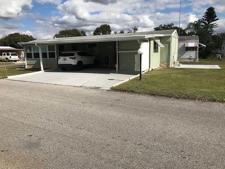 This home is on leased land with monthly lot rent of $445.03. This clean and bright cozy home sits on a nice corner lot in a 55 plus community. The home has two bedrooms and 2 baths and offers wood laminate flooring throughout with 16" tile in the Florida room. The home comes furnished has recently been painted inside and the T.V. antenna stays with the home. There is a nice computer desk area with drawers and cabinets. The home offers Thermopane tinted windows with gnat resistant screening and a backup window A/C unit. The double carport has room for two cars plus a golf cart. The shed is 7'.6"x9'.6" it has a work bench, a 53 gallon water heater and a washer and dryer. The Rain Bird irrigation system was replaced in 2017. The kitchen has a backsplash and the microwave was replaced in 2021. The master bath has a new vanity and sink, tiled back splash, a new high rise water saving toilet and two medicine cabinets. The guess bedroom has a queen bed. The living room is light and bright and has wood laminate flooring. The Florida room comes with a large armoire for plenty of storage. The home is in a very desirable senior park with a golf course and lake, offering many amenities. All listing information is deemed reliable but not guaranteed and should be independently verified through personal inspection by appropriate professionals. American Mobile Home Sales of Tampa Bay Inc. cannot guarantee or warrant the accuracy of this information or condition of this property. Measurements are approximate. The buyer assumes full responsibility for obtaining all current rates of lot rent, fees, or pass-on costs associated with the community, park, or home from the community/park manager. American Mobile Home Sales of Tampa Bay, Inc is not responsible for quoting of said fees. Attachments
