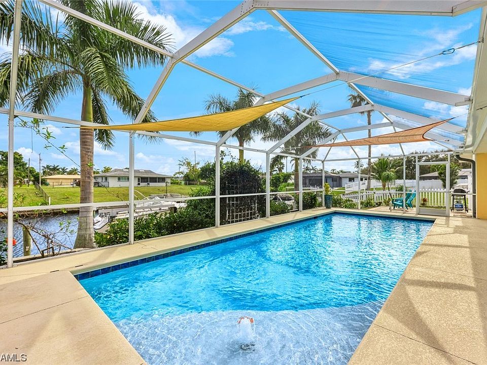 QUICK Direct Gulf Access POOL HOME! Enjoy boating and Florida living in this fully remodeled home with 3 Bed 2 Bath and a 2 Car Garage. Everything has been done - Just move in! Open living room overlooking the salt water heated pool (NEW IN 2019) and canal through the sliding glass doors. Beautiful Terrazzo floors, neutral color palate, and wood accent walls for a coastal modern feeling throughout. Kitchen has been completely updated with quartz counters, stainless appliances, floating shelves, decorative backsplash, and bar top seating. Spacious laundry room with pantry and room for 2nd fridge. Waterfront master suite features an updated bathroom. Generously appointed guest bedrooms. Step out the sliding glass doors into the patio with room to relax, watch TV outside with 360 degree view from pool, sunbathe, and take a swim in the pool! BOATERS - this is Direct Sailboat Access - minutes to the River & Open Water! Composite Dock with boat lift. Rock walkway and landscaping, privacy fence, and extra pad for more space. Some additional upgrades are New ROOF (2023), New GARAGE DOOR (2023), Electric Panel upgraded, Brand-new dishwasher - all other kitchen appliances (and cabinets) 2018, New Trex dock plumbed with water and Generator plugs into house. Convenient location close to dining, shopping, and the bridge for quick access to Fort Myers, beaches, and downtown. Take the boat to the beach, fishing, and explore the water!