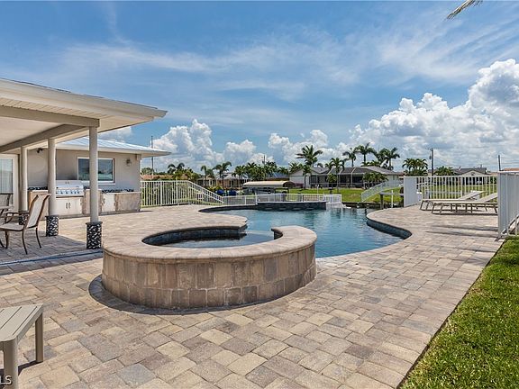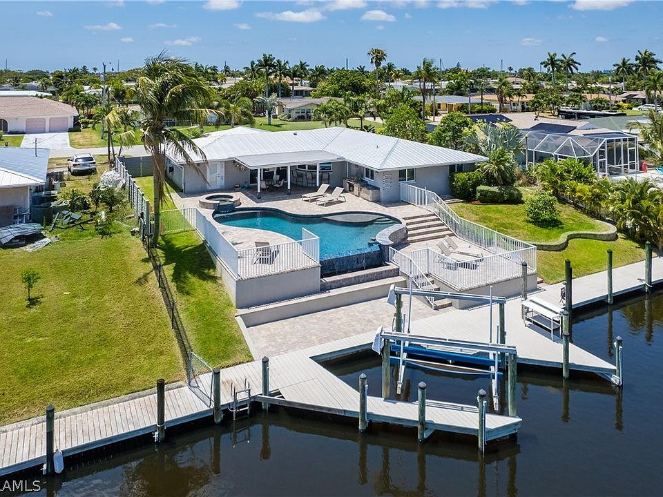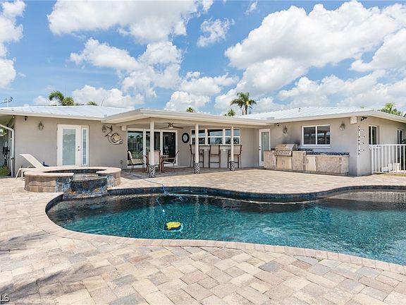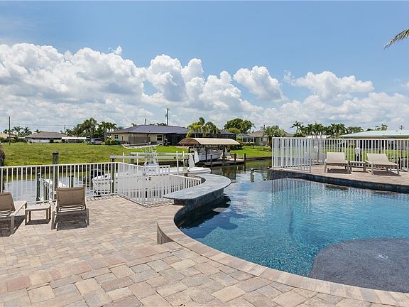 Welcome to paradise in this stunning four-bedroom, three-bathroom, two-car garage home located in the sought-after S.E.Cape Coral area with direct Gulf access, a saltwater-heated pool and spa, and a summer kitchen, this property is a boater's dream come true. This unique pool is 7 ft. deep and has a swim-up bar, so you can enjoy your favorite drink in paradise. The spacious pool area is perfect for entertaining or relaxing. It can accommodate a 42-foot boat and has a 7,000-lb. lift for smaller watercraft. There are no bridges to navigate the Caloosahatchee River, beaches, and the Gulf of Mexico, which are just one turn away, making it easy to enjoy a day on the water.