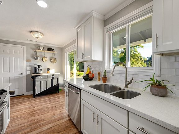BRAND NEW ROOF!!!! This beautifully remodeled one-level gem is in the heart of Sellwood. Enjoy laminate floors, stainless steel appliances, sleek quartz countertops, charming crown and baseboard moldings, bi-fold windows, designer tile work, and fixtures. Stay comfortable year-round with A/C and soak up the sunshine in your fenced private yard on a corner lot with beautiful paver walkways and patio. Plus, there's a gas BBQ hook up for outdoor entertaining! With Sellwood, Springwater Corridor, and concerts in the park just a stone's throw away, you're in an excellent location. The detached offices also are included with the property they can be moved if needed, they are fully modular.
