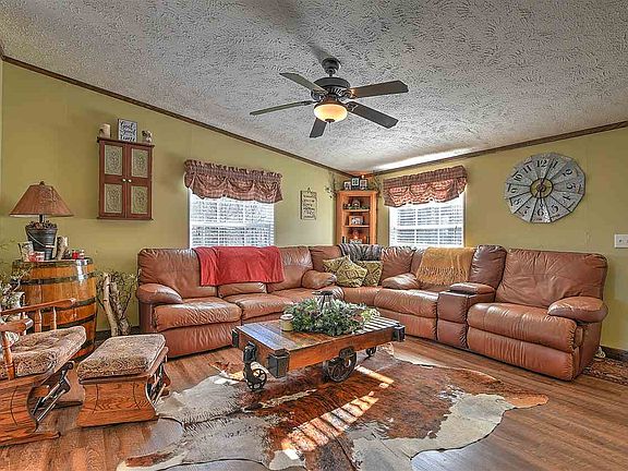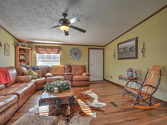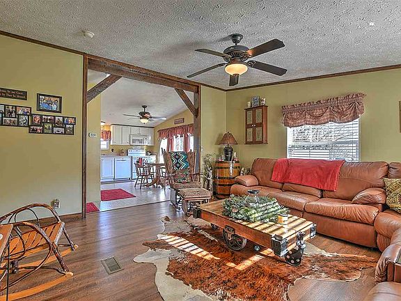 Great home with extreme privacy and lots of square footage. Mountain views in the front and countryside views in the back to be enjoyed on the huge front covered porch!! Metal roof and paved driveway. Amazing garage that has been modified into a finished living space that is currently being used as a theater room and office. The DW home is a 3BR/2BA that features new flooring, wood trim and accents in the living room. Freshly painted kitchen cabinets. Extra building has 2 additional bedrooms and 1 bath with 420 square feet.