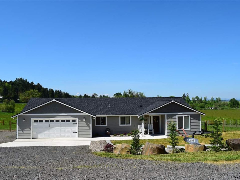 Accepted Offer with Contingencies. Newer single level ranch w/vaulted ceilings on 5 usable acres, minutes from Salem! Spacious open floor plan & large windows make for lush views throughout. Master suite features a walk in closet, soaker tub & separate shower. Huge fenced backyard & roughly 4ac of pasture w/room for a shop/garden. Over-sized garage, large gravel parking area & circular driveway off private ln w/quiet neighbors. Peaceful property & clean turnkey home! Add'l acreage available, can be sold as 10ac MLS#733572 or 15ac MLS#733574
