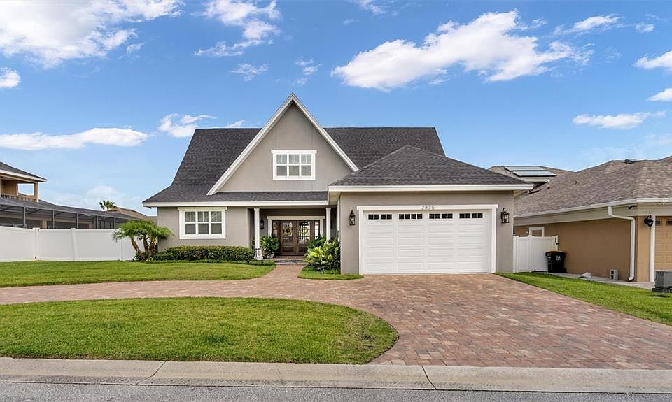 Experience luxury with this exceptional 2020 custom-built home in Vintage View, an established gated community. With breathtaking views of Downtown Lakeland and Banana Lake from its elevated location, this home is a true gem. Its prime South Lakeland address offers convenient access to shopping, restaurants, and the Polk Parkway. Impeccable craftsmanship and attention to detail are evident throughout, with custom trim accentuating every room. The kitchen, which is the heart of the home, features a generous island with seating, bookshelves, and storage cabinets. Quartz countertops, soft-close shaker cabinets, and high-end appliances complete the kitchen. A walk-in butler's pantry provides extra storage and counter space. The mudroom with a locker system and built-in desk helps keep your home organized. Retreat to the master suite with a spacious sitting area, luxury master bath, and dual sliding doors opening to the lanai. Three additional bedrooms, a bonus room loft area, and well-organized closets offer ample space. The home is equipped with a custom wired smart system, including a Sonos speaker system, remote video security, Nest AC controller, and more. Notable features include a custom solid wood front door, double-pane sliders, circular driveway, hidden storage, and luxury vinyl flooring. Outside, enjoy the heated saltwater "sport" pool and custom screened-in lanai with stunning views. The large fenced yard is perfect for outdoor activities. Combining functionality and luxury, this home is a dream come true. Don't miss out on this opportunity to make it yours.