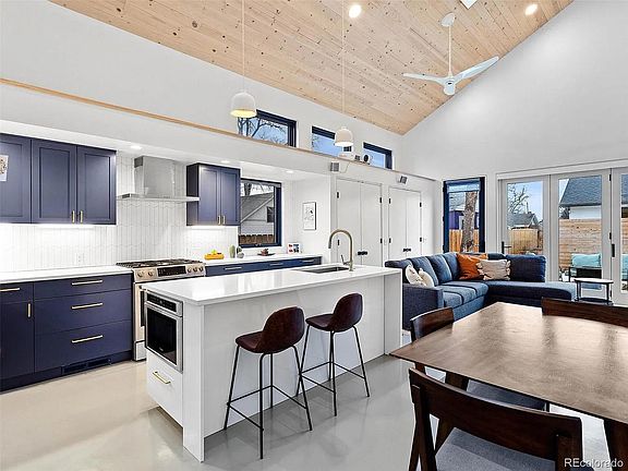 Recently built House is wrapped in charcoal steel and T&G wood siding with an iconic roofline and offers "design magazine" features from vaulted T&G ceilings and sleek fixtures to solar panels, powered skylights, haiku ceiling fans, 4K LCD projector + Sonos System. The kitchen has a large quartz-topped island with space for 4 stools plus sink and Bosch dishwasher. The island and perimeter have soft navy blue cabinets with white quartz counters. The custom tile backsplash has a modern geometric rhythm, alongside stainless LG fridge & Bosch gas convection range and vent hood. A soft brass Euro-style faucet adds sparkle to the island. The living room features a gas fireplace, accordion glass-panel doors that open onto the south-facing patio, and projection TV system. The master suite also opens onto the patio and features a walk-in closet with custom shelving and stacking washer/dryer plus an en-suite bath with Brizo fixtures, glass shower and vanity. A second bath has a tub, vanity and herring-bone tile. Both bedrooms have remote control blackout shades and remote-controlled ceiling fans. The house also features an oversized garage with built-in storage plus a heated/ air-conditioned office/ guest room space. Cedar fences provide privacy and Rachio smart sprinkler controls manage irrigation. We are offering this furnished or unfurnished. December 15- June 15 (flexible move out date!). We are offering this lease both furnished or unfurnished for 6 months (flexible end date for option to be earlier) and one space in the garage. Option if furnished to keep what you'd like in!