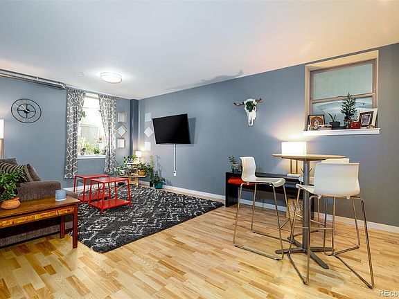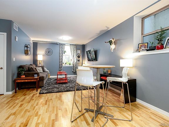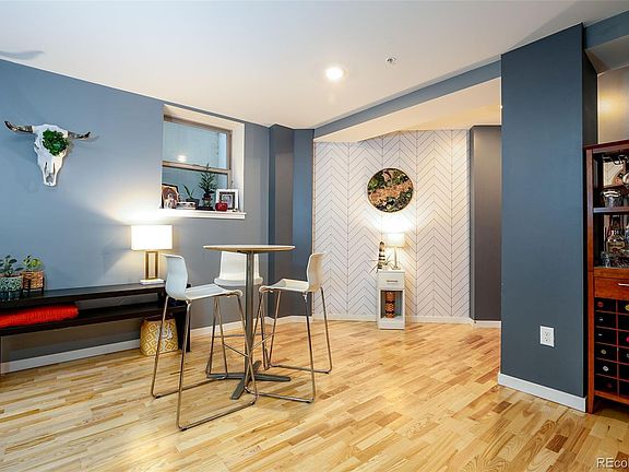 Fantastic condo located within Aria's vibrant cohousing community. The open floor plan boasts a spacious living and dining area, perfect for entertaining. A custom built-in work area provides a dedicated space for productivity, while the in-unit laundry closet adds convenience to your daily life. As an owner, you'll have access to Aria's shared amenities, including a fully equipped kitchen, dining area, library, and community spaces. Additionally, a bedroom suite is available for rent, ideal for accommodating out-of-town guests. The community's large patio, garden area, playground, and open spaces provide ample opportunities to be outside with Zuni Park close by. Conveniently situated on the lower level/basement this unit offers easy access from the parking lot. Aria's location puts you within blocks of Starbucks and provides easy access to the vibrant Regis, Sunnyside, and Highland neighborhoods, as well as I-70.