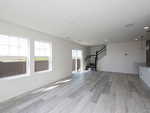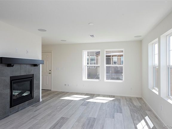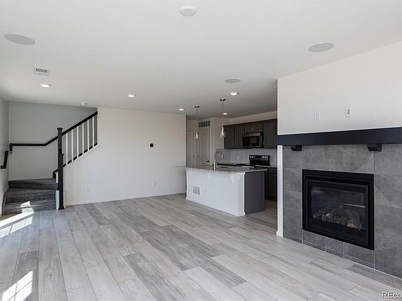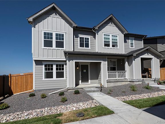 This beautiful, corner 2-story paired home features an open concept kitchen that overlooks the great room and spacious dining area. The kitchen showcases Timberlake Tahoe cabinets in color Boulder, a large center island with granite countertops and Whirlpool stainless steel appliances, including a Whirlpool French Door energy star refrigerator. The great room includes a traditional fireplace for those chilly Colorado nights. Upstairs, the loft provides plenty of space for a study, play area or anything your imagination can dream of! The upstairs continues to the large primary bedroom with spacious walk-in closet and primary suite. The primary suite offers a walk-in shower with bench, extended vanity with dual sinks. Additional distinguishing features include luxury vinyl plank flooring on the main level, modern open railing throughout, 8-ft. front and sliding glass doors and smart thermostat. Additionally, this home comes with a private side-yard and an attached 2-car garage. Move-in Now! The Listing Team represents builder/seller as a Transaction Broker.