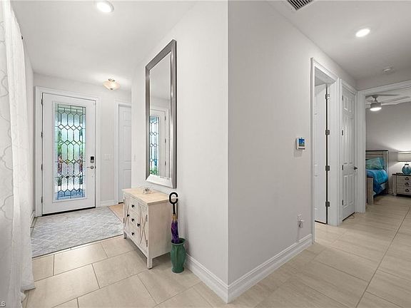 Welcome to Seasons at Bonita! This beautifully appointed 3BR, 2 BA Jennings model incorporates all the elements of both style and utility. From resort-style community amenities such as the beach entry community pool with Tiki hut, fitness room, tennis and pickleball courts, two dog parks for both large and small fur babies plus gated security access, to the perfectly situated home itself with it's serene lake view, luxurious salt water pool, screened, private lanai and upscale appointments throughout, this home is sure to check every box for even the most discerning Buyer. As soon as you enter you will first notice the like new feel of this impeccably maintained 4-year-young gem. Next you'll be greeted by an open, spacious feel, tons of natural light, neutral color palette, gleaming granite in the kitchen with an oversized island and stainless steel appliance suite ready for any quiet night at home or a house full of happily entertained guests. Function meets style with features such as an oversized kitchen pantry, spacious bedrooms with large closets, an en-suite primary bath as well as guest bath both with granite and tile shower surrounds and an attached 2 car garage with epoxy floor coating. Bells and whistles abound in this incredible home perfectly located just 20 minutes from both Barefoot Beach and Coconut Point, and situated within arms reach of everything Bonita Springs has to offer! Offered furnished. Move in and immediately enjoy!