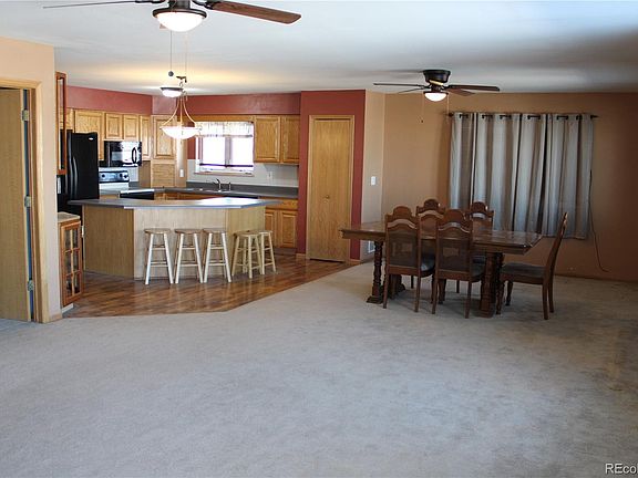 Private acreage! This move-in ready country home with grassland for livestock or to enjoy the quiet tranquility of mother nature is available for purchase. This acreage boasts a 325’ by 140’ arena with lights, corrals, a 60’ by 40’ Morton pole barn with tack room, a 1,400 square foot home with an attached 2-car garage all surrounded by 112 (+/-) acres of fenced grassland. The home offers two bedrooms, one and ¾ bathroom, an eat-in kitchen that opens into a great room where you can enjoy the beautiful Colorado sunrises and a maintenance free Trex deck spanning the length of this beautiful home. There is an unfinished basement with 9’ ceilings, egress window, and bathroom plumbing in place. Water is provided via a private domestic well. All this is nestled at the end of a private driveway surrounded by established trees, providing privacy and protection for this serene country property.