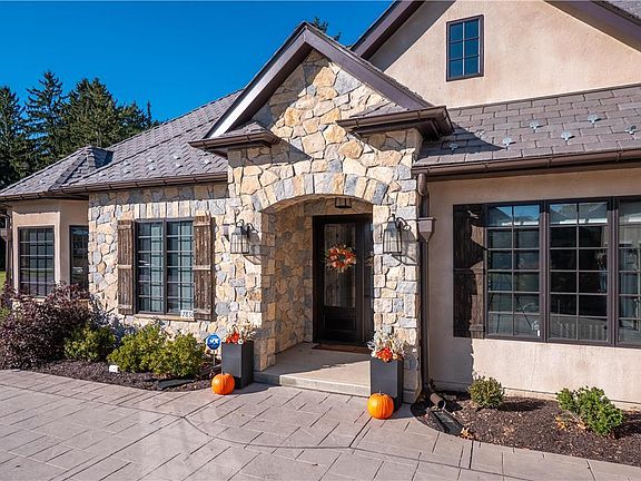 Looking for ELEGANT, CAREFREE LIVING in beautiful SAUCON VALLEY? Welcome to 2836 Clos Renoir, a CHIC RETREAT nestled in an exclusive community just a wedge shot away from the premier Saucon Valley Country Club. Whether you're here for a weekend round of golf or looking for your everyday sanctuary, this impeccably designed home offers effortless living—simply lock up and go! This OPEN CONCEPT, SINGLE FLOOR RESIDENCE offers modern sophistication, high-end finishes, and a SPACIOUS, AIRY LAYOUT. The formal Dining Room can easily double as a gym or flex space, while the PRIVATE STUDY provides escape offering tranquil cul-de-sac views. ENTERTAIN effortlessly in the STYLISH GREAT ROOM with WINE BAR and floor-to-ceiling GAS FIREPLACE, or step through double French doors to RELAX on the COVERED PATIO. The gourmet Kitchen features custom 48" cabinetry, designer counters, beautiful lighting, and a sunlit Breakfast Room perfect for morning coffee. Retreat to the LUXURIOUS OWNER's SUITE, where a spa-like bath awaits with RADIANT-HEATED FLOORS, oversized shower, freestanding SOAKING TUB, and a picturesque bay window. Two additional bedrooms, each with ensuite baths and walk-in closets, offer comfort and privacy for guests. The Mudroom/Laundry with built-in seating and storage ensure every detail of daily life is met with elegance. With an OVERSIZED 3-CAR GARAGE and a second-level BONUS ROOM ideal for STORAGE or a HOME GYM, this home offers the perfect blend of ELEGANCE and MODERN LUXURY.