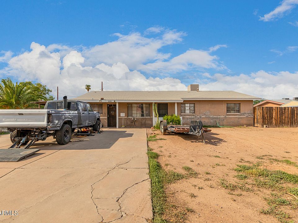 Come see this single-level residence in a great Phoenix location! Conveniently located near shopping, schools, and freeways. Nestled on a rear spacious lot, this home brings a fantastic fix opportunity. Wide driveway, RV gate, and lots of space for your toys. Inside, there's a nice-sized living room, concreted flooring so you can personalize, and ceiling fans. The eat-in kitchen comes with built-in wood cabinets and basic appliances. Main bedroom gives you a closet space and a private powder room! There's also a separate workshop! In the backyard is a covered patio and several outdoor shed for storage. Take a tour today to see the great potential this property has. All it needs is love!