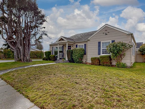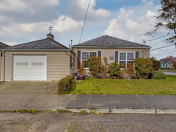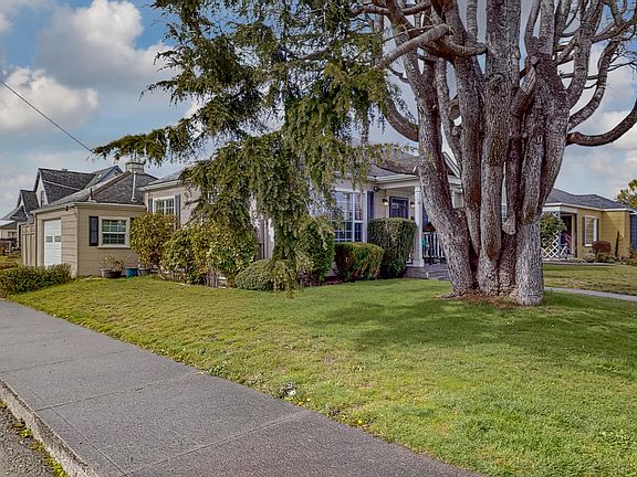 Cute as button and neat a pin. This well kept home sits in a quiet neighborhood next to the water tower. The first thing you will notice is the unique tree. Gleaming hardwood floors welcome you and run throughout the living room, kitchen, dining room and hallway. The living room is south facing with an abundance of windows and natural light. The cozy gas stove adds ambiance and heat. The guest bathroom is oversized with an extra large vanity area. The primary bedroom has a standard residential sized closet and a large closet with washer and dryer hook ups. The south west facing back yard has a deck with a hot tub and room for a potted garden. Call your favorite realtor today for a private showing.