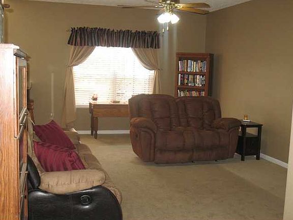 Relaxing 3 BR split plan w/2 Baths at edge of cul-de-sac. This home features 9' ceilings, lg Great Rm w/Breakfast bar in kitchen with newly refinished dark wood cabinets looking out over a very relaxing back yard. New dark wood laminate floors In living room and hallways, remodeled guest bath with new floors, sink cabinet and backsplash. In back yard you will find great things,, fire (pit) & earth (w/perennials to die for)! There has been no expense spared in turning this yard into a very relaxing retreat. Low taxes. Won't last long!!!. If perennials area concern, seller will remove.