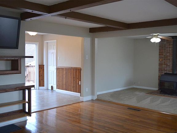 This updated ranch in quiet Moravec Acres is ready for you to make it home! Situated on a large cul-de-sac street in move-in ready condition. Updates throughout include- a 2023 architectural shingle roof on the garage and the main home, remodeled bathrooms, new tile floor in the laundry room, refinished oak hardwood floors, updated deck with view of woods, new carpet in dining room, new windows in living room, 2023 fifty-gallon water heater, 2021 high efficiency furnace & air conditioner, and updated plumbing & electrical. The Kitchen boasts a breakfast room with deck access, and includes spacious oak cabinetry and custom concrete countertops. Enjoy a wood burning stove in the family room for a cozy atmosphere. Exterior includes a 900+ sf oversized detached 2 car garage with plenty of room to park 2 vehicles and have a workshop. Ample parking with 2 driveways. Ideal location minutes away from High Ridge Elementary, Toasted Coffee Shop, and hiking at Pleasant Valley Nature Preserve.