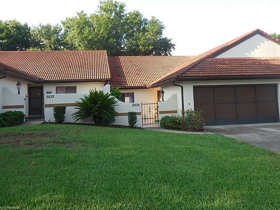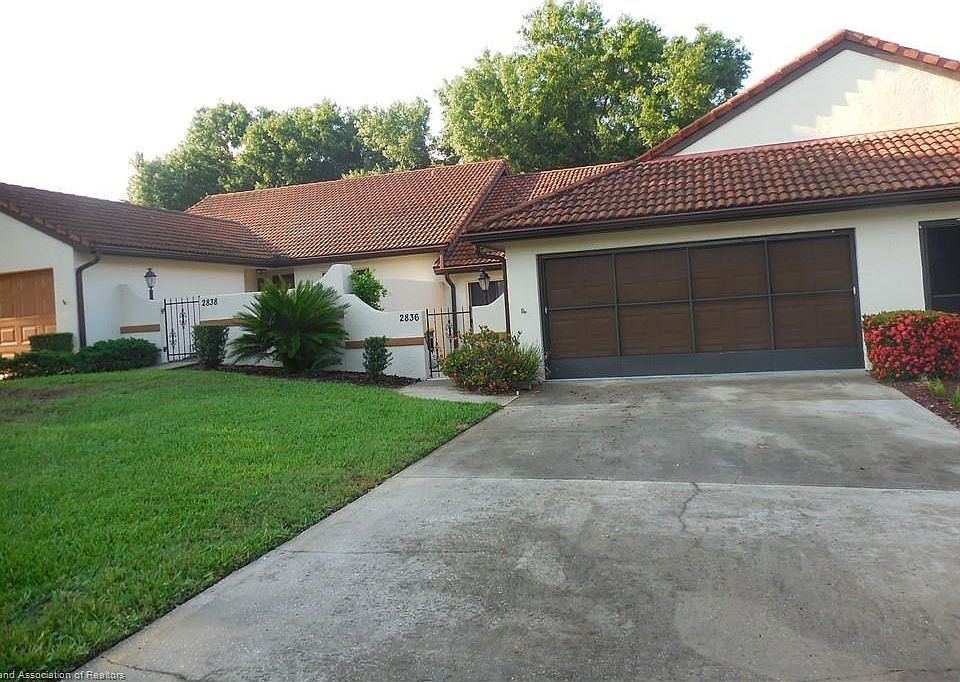 WONDERFUL SPANISH STYLE VILLA-QUADRAPLEX IN CASA DEL LAGO WITH LAKE ACCESS TO LAKE DAMON AND RIVER GREENS GOLF COURSE, ONLY A GOLF CART AWAY. THIS IS A GOLF CART COMMUNITY WITH FRIENDLY NEIGHBORS. DON'T MISS YOUR OPPORTUNITY TO OWN THIS BEAUTIFUL 2 BEDROOM 2 BATH 2 CAR GARAGE VILLA. OPEN CONCEPT WITH TILED KITCHEN & FOYER OVERLOOKING GREAT ROOM WHICH HAS TILED DINING AREA, GREAT ROOM AND DOORWAY LEADING TO AN ENCLOSED HEATED AND AIR CONDITIONED FLORIDA ROOM WITH A REAR VIEW OF AN ORANGE GROVE. VERY PRIVATE! ALL OF THE WHIRLPOOL BLACK APPLIANCES STAY INCLUDING A NEW WASHER, THE DRYER IS STAYING AS WELL AND THE UTILITY AREA IS CONVENIENTLY LOCATED IN THE GARAGE WHICH HAS A PAINTED FLOOR AND A SCREEN ACROSS THE GARAGE OPENING. AS YOU ENTER THE HOME THROUGH THE LOVELY OPEN COURTYARD PATIO, YOU WILL BE AMAZED AS TO HOW SPACIOUS THE HOME LOOKS. SOME OF THE FURNITURE STAYS. THE MASTER BEDROOM IS LARGE WITH TILED FLOORS LEADING INTO THE BATHROOM PLUS IT HAS A LARGE WALK IN CLOSET. THE 2ND BEDROOM IS ON THE OTHER SIDE OF THE HOUSE WITH A FULL BATHROOM. THE GREAT ROOM HAS LOVELY LAMINATE FLOORING. THE COMMUNITY HOA FEES OF $335.00 A MONTH INCLUDE, LAWN MAINTENANCE, IRRIGATION, PAINTING EXTERIOR, ROOF REPLACEMENT, OUTSIDE BUILDING MAINTENANCE, CLUBHOUSE, HEATED POOL, TENNIS COURT, SHUFFLEBOARD COURT AND COMMON AREA INSURANCE. THERE IS AN AREA FOR RV AND BOAT PARKING. CITY WATER AND SEWER. LAKE ACCESS TO LAKE DAMON WITH A PRIVATE LOCKED DOCK, GAZEBO AND SWING. PUBLIC BOAT LAUNCH DOWN THE ROAD. RIVER GREENS GOLF COURSE A GOLF CART DRIVE AWAY. VERY FEW OF THESE COME ON THE MARKET AND WHEN THEY DO THEY SELL QUICKLY.