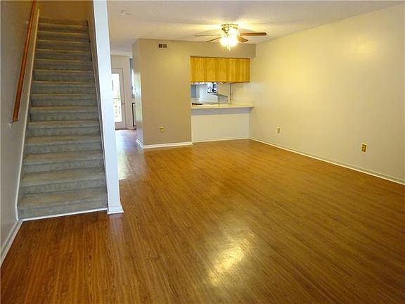 Spacious townhouse has large living/dining room with fireplace that opens to bright kitchen with lots of counter space and breakfast bar. King size master bedroom has vaulted ceiling, built in bookshelves , walk in closet and private bath. Loft area on the 3rd floor would make a great office or private tv room for master bedroom. Second bedroom has vaulted ceiling and 2 closets. Beautiul fenced , shaded deck in back. Laundry inside