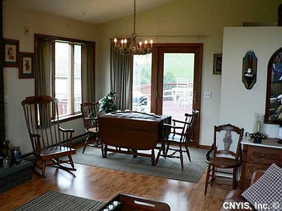 Welcome home to this 3 Bed 3 Bath Ranch style home. This home has fantastic curb appeal and is well landscaped. You are welcomed through the front door into the living room with brick fireplace. The open floor plan concept flows from the living room into the dining room and into the kitchen. The 1st floor features 2 bedrooms and 2 full baths including a master suite with entrance out to the wrap around deck. The basement features a family room with stone fireplace, laundry room, bedroom, and full bath. There is a spacious metal out building with overhead door. Don't miss out!!!