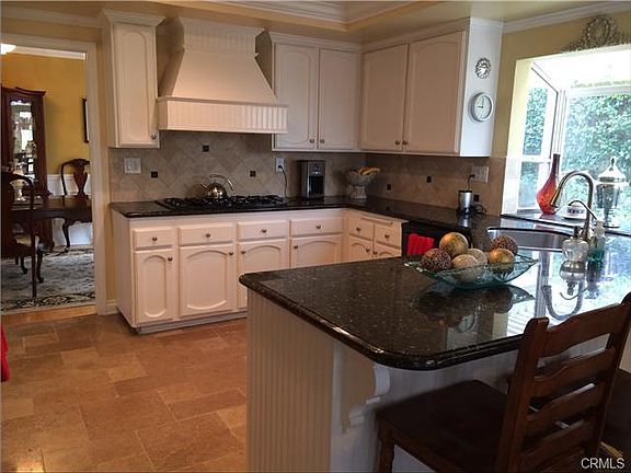 Elegant Home in gated Rolling Hills community.Amazing Sunset Views.Sought after floor-plan has coveted downstairs master bedroom with en suite,perfect for all ages.Cool breezes find their way through your slider where you enter into your private backyard oasis.Step down into the warm inviting living room with fireplace,hearth,custom window seats.Formal dining area includes crystal lighting fixture,wainscoting.Dining room slider to outdoor patio area,perfect for barbecuing.Kitchen boasts black appliances,white european cabinetry,dark granite counter tops.Gorgeous tile flooring covers entire kitchen cooking and additional dining area.This eating area has perfectly positioned slider to enjoy another covered patio,great for entertaining.Open-concept family room area has real-wood flooring,cozy gas fireplace.Powder room for guests is beautifully proportioned.Custom rod-iron banisters lead you comfortably to the second story.Upstairs is the family get-a-way...this extra living space is excellent for movie viewing and gaming systems.3 upstairs bedrooms all with tons of natural light.Upstairs Bathroom has been fully remodeled, includes a double sink vanity.Backyard includes mature fruit bearing trees and roses.You deserve to live the South OC Laguna Niguel dream!
