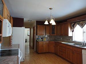 COUNTRY LIVING AT ITS FINEST!! A former parsonage, this 4-bedroom, 2 1/2 bath brick ranch has been well-maintained. Brand new kitchen with gorgeous oak cabinets, tile back splash and counter tops, and plenty of storage space. There are 1 1/2 bathrooms upstairs, along with laundry area. Some newer windows Full basement is semi-finished, has a walk-up door and was formerly used as a fellowship hall with two 1/2 baths, a kitchenette and lots of living space. Basement has B-dry system, 3-zone heating and could be used as extra living space or rented out. Home has attached 1 car garage, deep well, nice yard with mature trees - very peaceful setting. Lots of possibilities with this property - call for your private showing! C-1284
